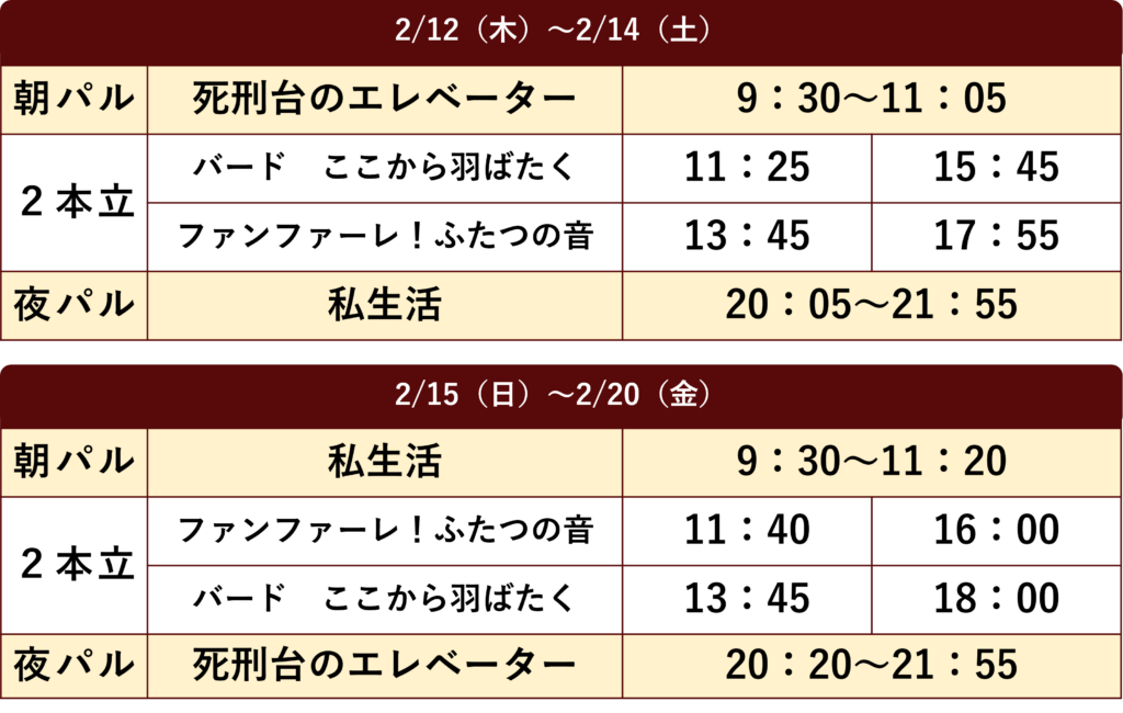 1本のみのご鑑賞でも料金は同じです。ぜひ2本ともお楽しみください。